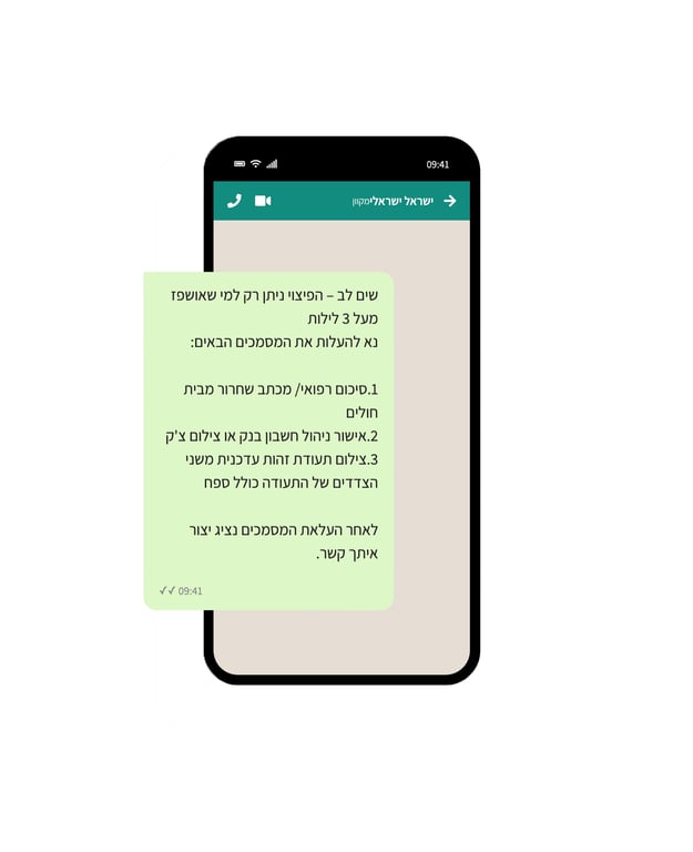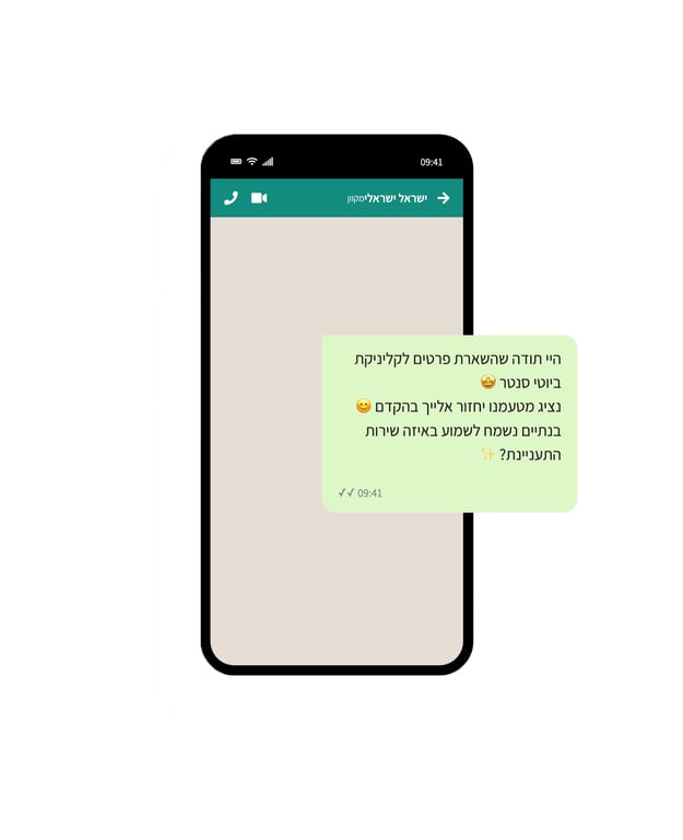 המערכת שולחת הודעת וואטסאפ מיידית לכל ליד חדש עם קטלוג השירותים שלכם. כך אתם מבטיחים מענה ראשוני בשניות, שומרים על "לקוח חם" וחוסכים זמן יקר על שליחת הודעות ידניות.